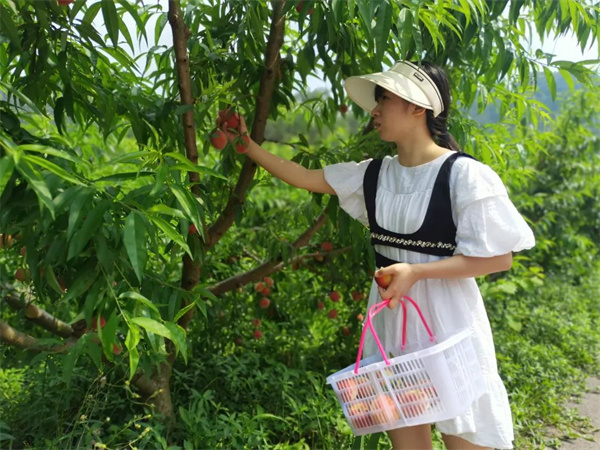 “我们现在是有两批桃子陆续开始成熟了,山下的现在就可以开始采摘,有100多颗的数量,预计的产量可能是1000斤左右;山上的桃子预计本周末开放采摘,山上的桃子品种就是一个脆、硬、甜的特点。周末的时候我们也会在山上开放一个农家乐,大家可以来品尝农家饭,也可以来休闲娱乐一下。”剑峰镇四家沟村脆桃种植户潘慧敏表示。