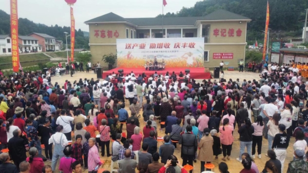 上午九时许,现场一片欢腾,当地群众通过歌曲、舞蹈、乐器演奏等精彩纷呈的文艺节目展现丰收的喜悦,引得台下观众连连叫好。