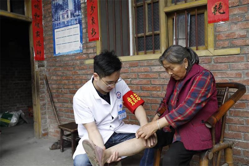 “罗医生(市二医院骨科主任罗凯)经常上门给我诊疗,我手术后已经来了好几次。”两年前,罗凯为王云英进行了双膝关节置换手术,术后医院开展主题党日活动,罗凯都会带领骨科团队到水蹍村上门诊疗,让村民足不出户便可以享受到医疗服务。“膝关节病变后,许多患者行动不便,医生上门诊疗给大家提供了方便。”王云英说。