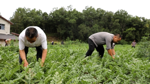 6月25日,在梓潼县宝石乡白马村,绿油油的西瓜藤叶铺满了地面,一个个圆滚滚的西瓜“躲”在藤叶间,长势良好,十分诱人。村民们正忙着挑选、采摘、背运,忙得不亦乐乎。在农业技术人员的指导下,白马村今年种植“锦霸”西瓜310亩,平均亩产6000斤左右,1.2元一斤销售到成都、重庆、贵阳等地。据介绍,这个品种生长周期短,从移栽到收获仅3个半月时间,西瓜收获后还能种植玉米等农作物。