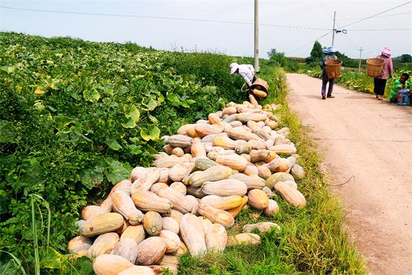 只有好品质才能获得好销路。据种植大户刘忠平介绍,今年尝试着种了20亩密本南瓜,相较于传统的南瓜,具有耐干旱、易管理、产量高等优点,个大饱满,肉厚结实,亩产可达4000斤,平均价格0.65元/斤,收入大概在5万余元。主要销往广州、广西、云南等地。“受天气干旱的影响,今年的南瓜较去年果稍小,但是我们天宫庙村种植出来的南瓜口感好,根本不愁销路,收购商都是直接上门收购。”