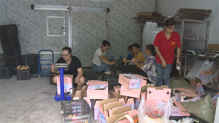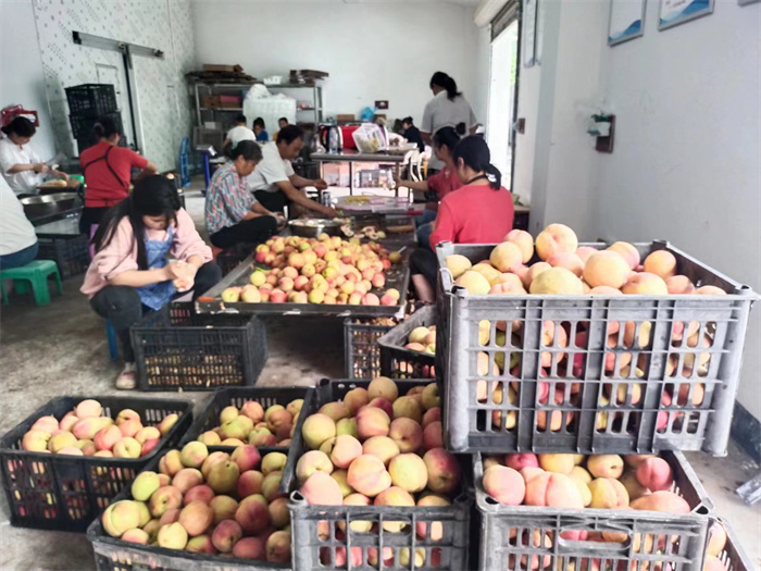 在水蜜桃上市期间,生产车间每天的用工量都是在30人左右,进行分级、包装、打包、发货、切桃片等工作,都是用的当地的剩余劳动力,群众依托水蜜桃产业实现了多渠道增收。
