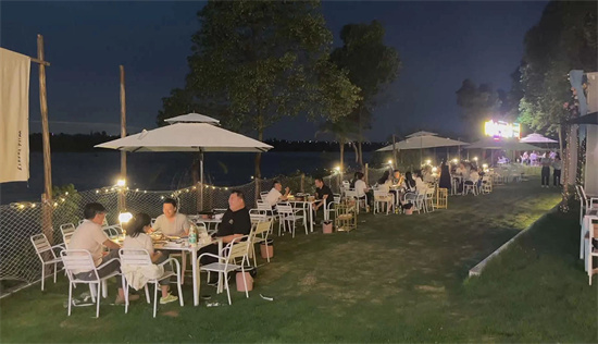 “开业至今,一直深受游客的青睐,最多一天接待过近千人。”恋香月湾花园餐厅负责人肖磊介绍,餐厅最初的设计理念就是主打差异化,以“美食+”带动整体消费,推出了户外烧烤、星空帐篷、滩头文化、亲子戏水等新场景,一站式满足了不同人群的需求,让大家在品味美食的同时,享受一场文化大餐。