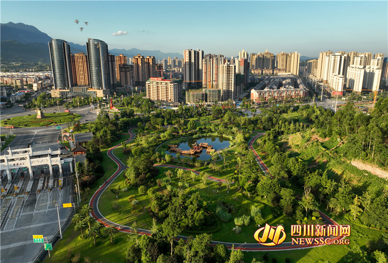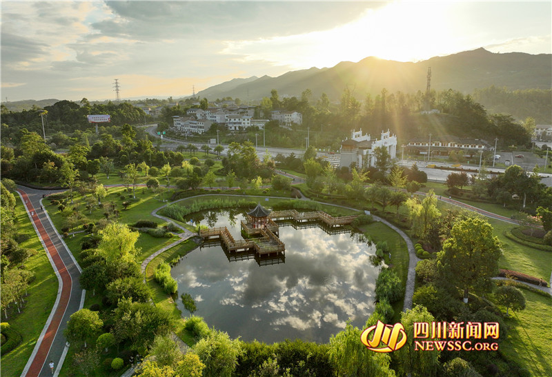 | 8月14日,四川省华蓥市在原废弃煤矸石和弃渣堆放场打造出的城北生态公园,在晨曦的映照下显得温馨祥和。 |