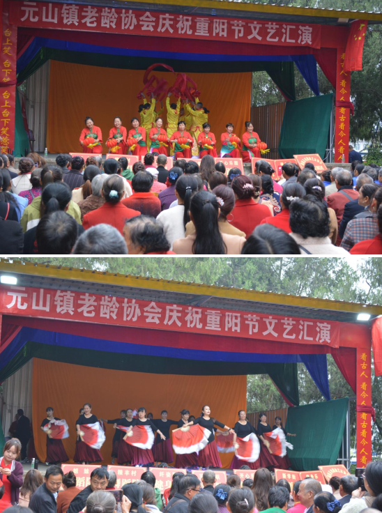 此次活动通过游行、文艺汇演、川剧折子戏、大幕川剧等形式举行。活动由元山老龄协会主办,共8个文艺队伍28个汇演节目,演员及相关工作人员近190人参加,前来观看表演的人挤满整个广场。一个个精彩的歌舞表演,唱出了他们对生活、对党和国家的热爱,舞出了他们的健康和活力。