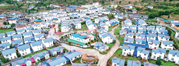 在甘洛县普昌镇眉山村,一排排白墙青瓦的江南风格民居坐落于青山环绕之间,院落干净整洁,环境清新优美,187户、1047名异地搬迁集中安置的彝族村民幸福地在这里生活。这样的画面来自绵竹对口帮扶甘洛打造的一处集生态美、生活美、空间美、文化美于一体的“民族美学第一村”特色乡村。