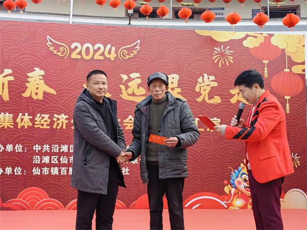 2月2日,沿滩区仙市镇百胜村的文化广场上,村民们齐聚一堂、热闹非凡,大家在欢声笑语中迎来了全村集体经济的分红大会。