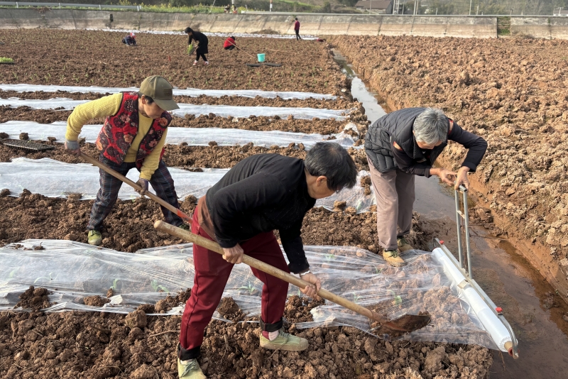 “今天我们要栽种8亩多地的玉米苗,在这里工作一天可以挣60元,工作内容主要是种植、管理,既可以增加收入,又可以学习种植技术,这样挺好的。”村民蒋秀兰说道。
