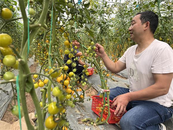旭阳镇黑林村七组小塘沟18亩的千禧小番茄种植大棚里,红的、黄的、绿的各色小番茄挂满枝头、长势喜人。4月16日上午,大棚里就迎来了一批前来采摘的客人。“皮薄、汁多、好看又好吃。”随子女到黑林村务工的自贡市民刘婆婆已经摘了满满一箩筐,“每天都要来摘一点带回去,现摘的新鲜!”记者看到,每排番茄苗都笔直生长、高度已接近2米,每一分叉都挂着一长串小番茄,过入4月中旬,千禧小番茄也已成熟,最底层小番茄已可采摘,采摘期将一直持续到7月中旬。