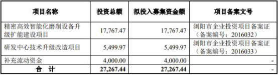 业绩变脸不久,宇环数控收到深交所的问询函。2019年5月31日,宇环数控收到深圳证券交易所2018年年报问询函。对于2018年业绩大幅下滑的原因,宇环数控在回复公告中表示,受国内外宏观经济环境的双重影响,国家货币和财政政策稳中趋紧,机床工具行业总体需求增速趋缓,公司外部经营环境面临较大的压力和挑战,2018年公司经营业绩出现较大幅度下降。 宇环数控上市时披露的公告书显示,公司以每股12.78元的价格发行2500万股,募集资金总额为3.20亿元,扣除发行费用募集资金净额为2.73亿元。其中,1.78亿元用于精密高效智能化磨削设备升级扩能建设项目;5499.97万元用于研发中心技术升级改造项目;4000.00万元用于补充流动资金。