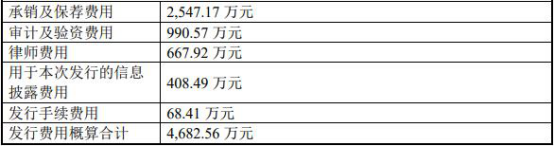 宇环数控的发行费用总计4682.56万元,其中支付给保荐机构——安信证券的承销及保荐费用达到2547.17万元。 另外,支付给天健会计师事务所的审计及验资费用990.57万元,支付给湖南启元律师事务所的律师费用667.92万元,每股发行费用为1.87元。