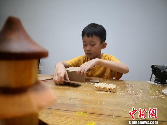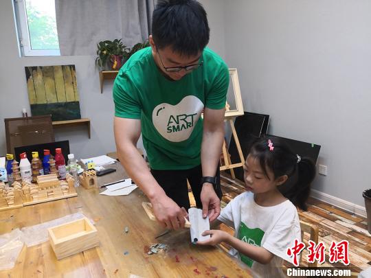 图为7岁的李轩锐正在搭建圆榫盒子。高康迪摄 中新网兰州8月20日电 (高康迪 高展 高莹)做一个窗花收纳盒、一个圆榫盒子,从一块木头着手,经过简单切割、打磨、拼接等工序,1个小时就可完成一件木质作品。7岁的黄威凯指着自己新完成的窗花收纳盒说,“这已经是我完成的第7个作品了,每做完一个作品都有成就感。” 图为老师正在给学生手把手引导教学。高康迪 摄 这个暑假,是黄威凯第七次来“小木匠”兴趣班了。“之前做了佛塔、藻井等,手工老师上课之前,会给我们讲这个东西的历史背景和古时候的作用。”黄威凯说,以前喜欢搭积木,现在可以用木头做出那么多神奇的物品,非常喜欢。 在这间培训机构里,墙上、桌子上摆满了木头制作的小物件,有梳子、收纳盒、梳妆盒、花瓶、佛塔、藻井等等。这些作品全部来自于“小木匠”班的学生们,每到一个阶段的培训结束后,就会集中展示学员作品,展示结束后,再各自带回家。 图为王跃天介绍家长和学生已经制作的作品。高康迪 摄 “增加知识的同时又培养了孩子的耐心。”今年34岁的于卉是一位美术老师,每到暑假就会给自己的孩子李轩锐报名上“小木匠”兴趣班,在她看来,孩子通过学习,动手能力比以前强了,提高了审美能力,在家里搭建乐高也跟以前不一样了,搭建玩具时,他都能加入自己的思考。 “看着一块块木头在孩子手中一点点变成一件艺术品或生活实用品,让孩子从小感受心灵手巧,同时增加一些古代文化知识。”于卉说。 目前,该培训机构主要有美术课程和木工制作课程两大板块。针对木工作品制作,培训机构主要负责人王跃天介绍,现在学生能做的产品有几十种,按照从易到难进行授课,由于都是家长带着孩子来上课,他们还特别开设了亲子课堂。亲子一起动手制作一件作品,很有意义,制作的过程还能增进感情,提高专注力,缓解紧张生活带来的压力。 王雪带着8岁的女儿上课时告诉记者,现在随着电子产品增多,孩子沉迷于打游戏,动手能力减弱,经过几次上课后,明显感觉孩子的空间感强了,培养动手能力的同时也培养她独立思考能力。 “为孩子提供一个艺术的家庭氛围,陪伴给予孩子启发和引导。”培训机构负责人王跃天表示,提倡以家庭为单位的艺术教育,鼓励家长和孩子一同接受艺术熏陶,开设父母课堂,下一步,为父母准备插花、油画、等艺术体验课程,让父母和孩子一起学习艺术,获得亲情和艺术的双重收获。 原标题:亲子“木匠课堂”流行金城:艺术中倡导身心陪伴的亲情