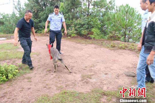 图为闯入农家的国家二级保护动物中华鬣羚。景东县森林公安局供图 中新网昆明8月26日电 (缪超 周芸)记者26日从云南省景东县森林公安局获悉,近日一只国家二级保护野生动物中华鬣羚闯入当地农户家里,农户向森林公安报警求助。 22日,景东县文井镇一村民家里突然闯进一只“怪兽”,它的角像鹿角、头像羊头、蹄像牛蹄、尾像驴尾,活脱脱一个现实版的“四不像”。 它在院子里一阵乱窜后,误入猪圈,村民赶紧把它关了起来,并于第二天打电话向当地森林公安局报警求助。 图为民警将这只中华鬣羚带到野外适宜地段放归自然。景东县森林公安局供图 景东县森林公安局民警赶到村民家中,经过认真鉴别,确认这只闯入农家的怪兽学名为中华鬣羚,属于国家二级保护野生动物。民警分析,可能因当地下大暴雨,中华鬣羚从附近森林走出后,误闯入村民家中。 据了解,中华鬣羚也叫明鬃羊,属牛科,典型林栖兽类,是亚洲东南部热带、亚热带地区的典型动物之一,主要活动于海拔1000~4400米针阔混交林、针叶林或多岩石的杂灌林。 经过仔细检查,民警并未发现这只中华鬣羚有受伤的痕迹,而具有攻击性,因此判断它具备野外生存能力,适宜放归自然。随后,民警将这只中华鬣羚带到野外适宜地段放归自然。(完) 原标题:国家二级保护动物中华鬣羚闯入农家 民警救助放生 |