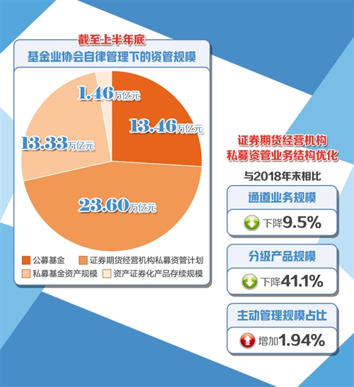 今年以来,公募基金管理规模持续稳定增长,养老金FOF、科创板基金迸发活力,货币市场基金风险得到有效管理。私募基金持续推动创新资本形成。但在取得成绩之余,去通道、降杠杆等方面还存在压力。基金业协会表示,下半年将集中精力解决好相关问题—— 日前,中国证券投资基金业协会发布了今年上半年工作“成绩单”及下半年工作计划。基金业协会发布的数据显示,截至上半年底,基金业协会自律管理下的各类资产管理业务存续总规模为51.71万亿元。其中,公募基金13.46万亿元,证券期货经营机构私募资管计划23.60万亿元,私募基金资产规模13.33万亿元,资产证券化产品存续规模1.46万亿元。 推动创新资本形成 今年以来,公募基金管理规模持续稳定增长,养老金FOF、科创板基金迸发活力,货币市场基金风险得到有效管理。 证券期货经营机构私募资管业务结构也不断优化,降杠杆、去通道效果明显,主动管理能力、服务实体经济能力增强,与2018年末相比,通道业务规模下降9.5%,分级产品规模下降41.1%,主动管理规模占比增加1.94%。 私募基金持续推动创新资本形成。截至今年二季度末,私募基金累计投资于境内未上市未挂牌企业股权、新三板企业股权和再融资项目数量达10.75万个,为实体经济形成股权资本金6.03万亿元。 为推动资管行业健康发展,基金业协会修订和完善了一批法律法规。例如,持续推动《私募基金监督管理暂行条例》的出台和《私募投资基金监督管理暂行办法》的修订,对《基金法》未明确事项进一步补充和完善;积极配合《公开募集证券投资基金管理人管理办法》《公开募集证券投资基金信息披露管理办法》等法律法规和部门规章的修订或出台,推动完善行业制度供给。 还存在四方面问题 在取得成绩之余,“基金赚钱、投资者亏钱”顽疾,资管业务去通道、降杠杆的压力等问题也还存在。 一是公募基金无法摆脱“基金赚钱、投资者亏钱”的怪圈,专业价值得不到充分发挥,投资工具属性弱化,缺少从投资者需求到大类资产配置再到最终资产组合管理的完整生态。目前,公募基金结构尚不合理,权益类基金停滞不前,货币市场基金一枝独大,行业流动性风险上升,与整个金融体系的风险高度关联。从历史记录看,最近15年来公募基金收益良好,显著高于市场无风险收益率水平。但与此同时,个人投资者由于频繁申赎、高买低卖等原因,基金投资体验较差。 二是证券期货资管业务未能坚持资产管理属性。2012年以来,在放松管制和鼓励创新的环境下,证券期货经营机构资产管理业务得到迅速发展。但是,部分资管业务演变为银行理财、信托计划的替代品,在资金来源与投向上受制于银行资金运用需求,没有发展出独立的募集投资管理能力,买方业务卖方化、组合投资单一化等问题突出,面临去通道、降杠杆压力。在规模高峰期,通道类业务占比达68%,单一项目融资占比达15%,目前已分别降到63%和12%,主动管理能力有所提升,但面临银行理财子公司等新兴资产管理机构的挑战,转型压力巨大。 三是私募投资基金在推动创新资本形成、服务中小微企业方面起到了重要作用,但仍有“伪资管”业务甚至非法集资融资业务隐藏其中。部分私募基金名为投资,实为高息揽存、利用“资金池”赚取巨额利差;名为股权投资,但通过强制回购等兜底条款或者抽屉协议“藏污纳垢”,实为单一项目的借贷业务,甚至以为实际控制人及其关联方自融为主要目的;部分私募基金变相从事P2P等类金融业务,沦为非法集资等违法违规行为的保护伞。 四是行业尊重规律、尊重专业、信用立身文化不足,部分机构和从业人员风险合规意识淡薄,职业操守和专业水平较为低下。 重点解决股权代持等 对此,基金业协会表示,下半年将正视行业问题,集中精力围绕受托人信义义务完善行业行为规范、解决好私募基金“伪资管”和利益冲突问题、解决好证券期货经营机构资管业务转型规范问题;坚持市场化取向,努力推动专业分工和市场化信用体系建设,包括推进大类资产配置业务发展,推动资产管理链条专业化分工,推进过程信用管理和市场化信用机制建设,推进从业人员管理和专业道德培养工作等;坚持法治化道路,努力优化行业生态和制度环境。 在谈到下半年工作时,基金业协会指出,将尽快修订《登记备案须知》《私募投资基金服务业务管理办法》,积极推动《基金从业人员资格管理办法》《私募投资基金管理人从事投资顾问服务业务管理办法》《私募投资基金托管业务管理办法》出台,研究发布私募基金行业尽职调查指引,抓紧制定合伙型和公司型基金合同指引,持续完善机构登记、产品备案、从业人员管理以及托管、估值、法律意见书、审计报告等展业规范和规则体系,确保忠实义务和注意义务得到很好履行,保护投资者合法权益。 同时,针对严重违背投资者利益优先原则和基金管理人忠实注意义务,可能将投资人置于利益冲突风险之中的各类机构和产品,基金业协会表示,将建立清晰的登记备案审核底线,重点解决机构登记中“全牌照”、“集团化”、股权代持问题和产品备案中名为基金、实为存款,先备后募,变相自融等问题,对于触动底线原则、存在实质性问题且难以改正的申请敢于否决,对存在非实质性问题的,可以通过事中管理和持续培训监督改善的申请要敢于通过,减少补正次数,