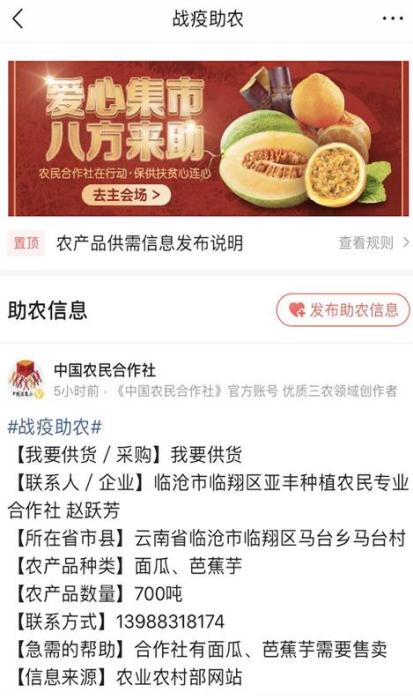 “果农、菜农们焦急的样子,真的很令人心疼,作为信息平台,我们希望能够通过信息的高效分发和对接,来帮助农产品找到销路,也帮助城市里的用户一定程度上解决蔬菜水果供应问题。”此次“战疫助农”活动的相关负责人表示。