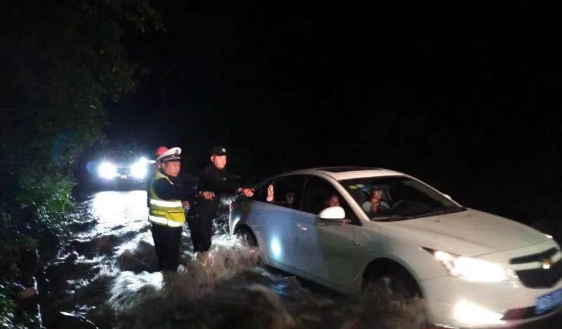 7月25日18许,松潘县公安局黄龙交警中队接到110指挥中心发布的出警指令:辖区有多处路段有外地自驾游车辆在雨中无法通行,需要救助。由于风雨影响视野,报警人语气十分慌张,一时无法说出自己被困的确切地点。民警凭着报警人断断续续的描述,锁定他们被困位置在丹云峡上下河谷一带。
