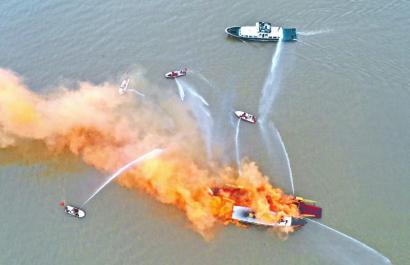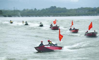 7月30日,由四川省消防援救总队主办、遂宁市消防救援支队承办的2020年度总队级抗洪应急演练在遂宁涪江拉开帷幕。成都、德阳、绵阳、南充、宜宾、广安、遂宁7支抗洪抢险突击队共400多人参与演练。本报记者 李向雨 摄