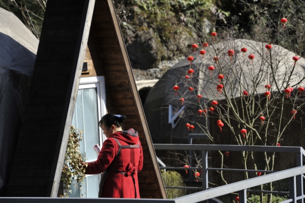 四川新闻网消息(杜康)霍比特小屋前悬挂着一排排大大的红灯笼;遇见·栖心民宿旁边的树枝上挂满了红红的小灯笼……安州区桑枣镇齐心村各景点都以中国传统方式贺新春、迎宾客。