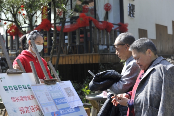 “叔叔、阿姨,请用微信或者支付宝扫四川天府健康通二维码,然后在这边登记一下。”2月16日上午,位于齐心村的翎谷·濯缨景区入口处,工作人员对准备进入景区的游客说。
