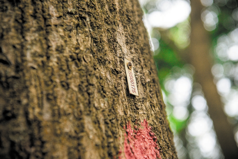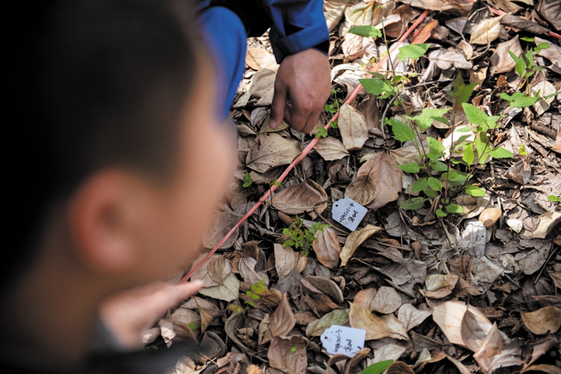 在一片香樟林里,队员们停留了很久。围绕在一个1米×1米的单元格周围,耐心地拨开洒落在地上的树叶后,将压在其下的小苗扶正,拍照、记录编号、恢复原状……记者拿出手机记录了一下,每一棵小苗的完整流程需要8分钟时间,这样的单元格在整个龙泉山上有上百个。