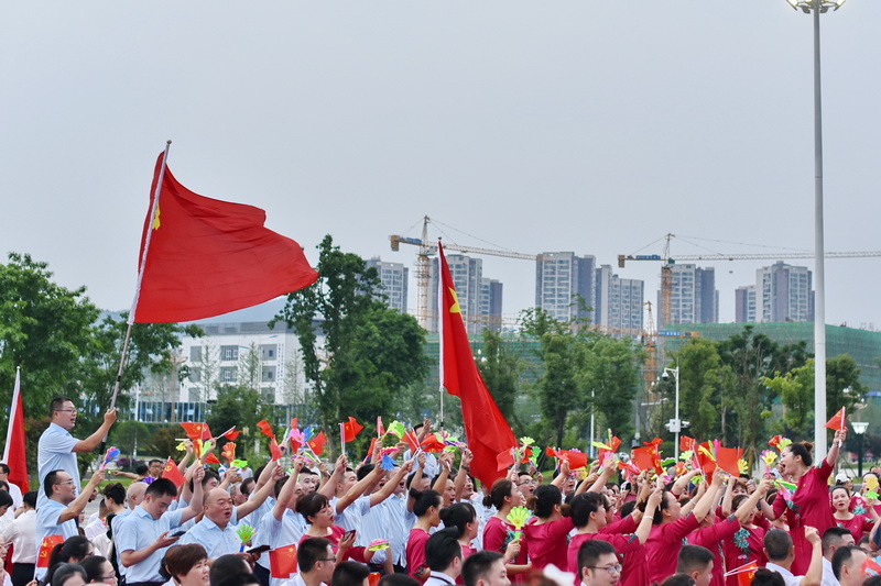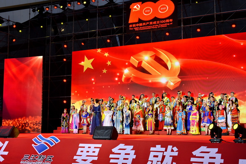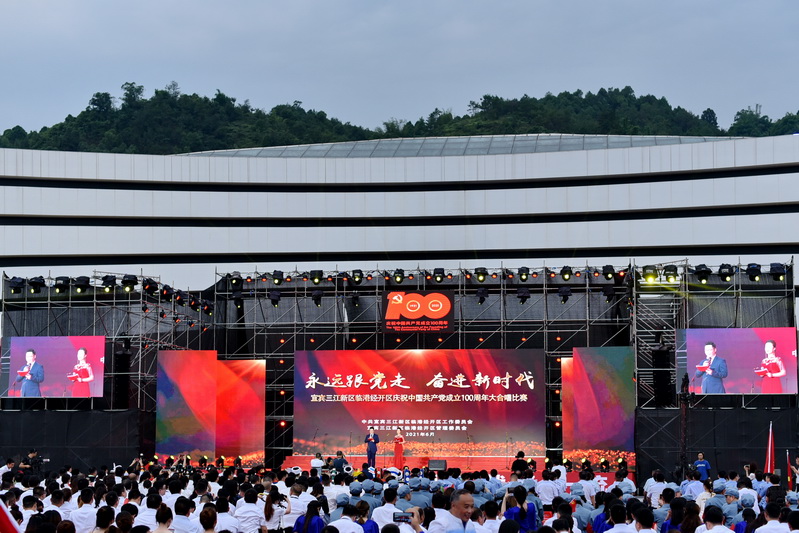 四川新闻网消息(古瑞阳 吴俊江 记者 周瑜原 摄影报道)6月20日,为庆祝中国共产党建党100周年,宜宾三江新区、临港经开区举行“永远跟党走,奋进新时代”——庆祝中国共产党100周年大合唱比赛,16支队伍1500名队员,用歌声庆祝党的百年华诞,祝愿伟大祖国繁荣富强,三江新区蓬勃发展、蒸蒸日上。
