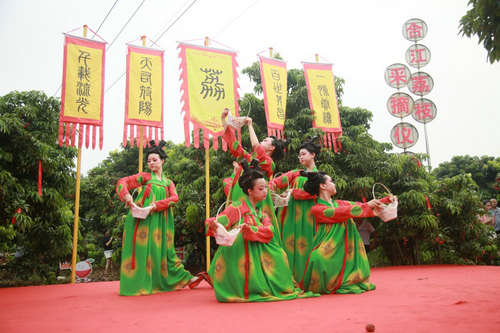 祭祀现场,仿古道旗、宫扇和身着古装的演员们让现场观众仿佛回到盛唐时期的符阳,一年一度的祭祀仪式寄托了合江人民祈福年年风调雨顺、百姓安居乐业的心愿,那一颗颗的荔枝,味甘而多汁,也象征着合江儿女期待爱情甜蜜,婚姻美满。