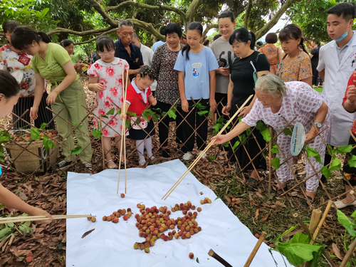 共庆丰收,共品甜美。在趣味采摘环节,荔枝垂钓戏、荔枝蹴鞠戏、荔枝举箸戏等荔枝主题的趣味活动吸引众多游客热情参与,大家在采摘、品尝荔枝冰饮中零距离体验荔枝绿色生长环境,感受合江荔枝品质。