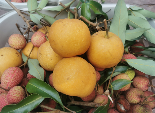 一走进新学村,空气中四处飘溢着梨香,放眼望去漫山遍野都是翠冠梨。市民三五成群,挎着果篮,品果采果,穿行其间,饱览田园风光,好不惬意。
