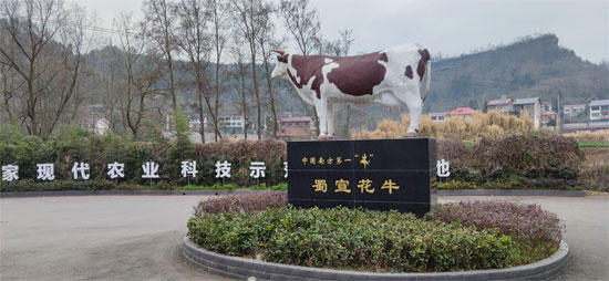 据记载,宣汉早在2100多年前就开始饲养、选育,并逐渐培育出宣汉黄牛这一品种。蜀宣花牛则是以宣汉本地黄牛为母本,选用原产于瑞士的西门塔尔牛和荷兰的荷斯坦乳用公牛为父本,历经30余年培育而成的乳肉兼用型牛新品种,可谓中西结合的典范。因此,宣汉县的众多乡镇便纷纷发展起蜀宣花牛的养殖,大成镇的锦宏牧业等一批专业养殖场也如雨后春笋般拔节生长。
