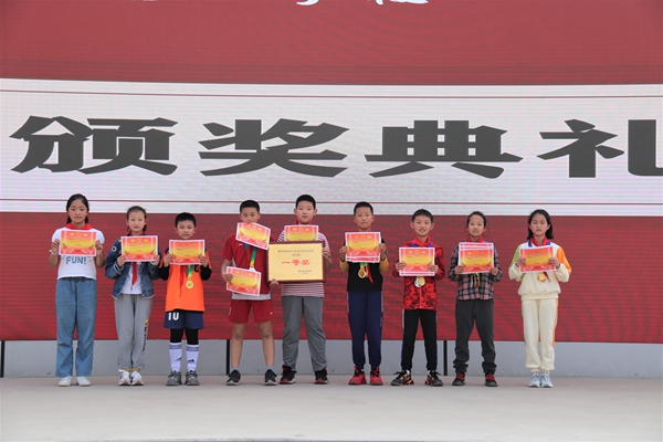 颁奖仪式上,大屏幕上播放了赛场精彩集锦,全校师生一起观看了运动员们的赛场英姿,大家仿佛置身比赛现场,同学们情不自禁地为运动员们呐喊、助威!随后,运动员们朝气蓬勃地走上主席台,学校为他们颁发了奖状,同学们报以热烈的掌声以示祝贺。