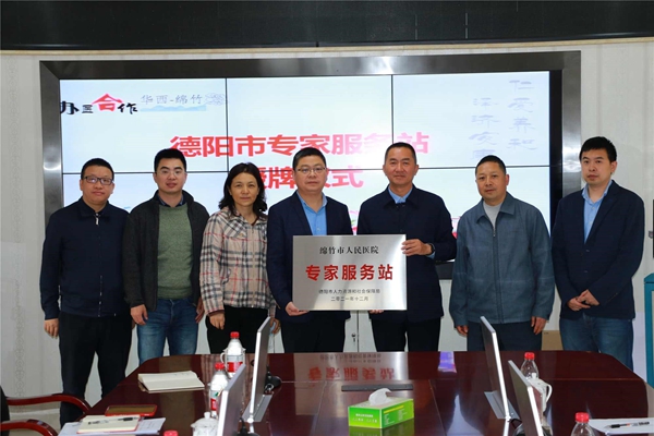 四川新闻网消息 日前,德阳市科协三级调研员何勇带领德阳市人社局、卫健局、农业农村局相关工作人员来到绵竹市人民医院,为该院进行“德阳市专家服务站”授牌。