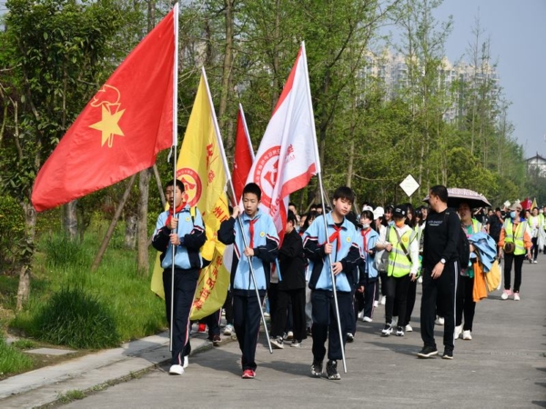 活动前期,学校进行了精心策划,确定路线,制定方案,召开筹备会。本次远足拉练路线,从学校出发,途经河东新区后返回,全程18公里。为了确保整个拉练活动的顺利进行,安排了交警、医护人员、家长志愿者随队维持秩序并负责全程指挥。一路上,同学们在老师、家长的守护下,安全穿过每一个路口;在班干部的带领下,齐声高歌,精神昂扬;在校旗的引领下,班级与班级之间相互鼓励、相互比拼。同学们良好的精神面貌,坚强的意志,赢得了沿途村民的赞誉和褒奖。一边欣赏着大自然美好春色,一边用心感受着班集体带给自己的力量,播下了感恩的种子。