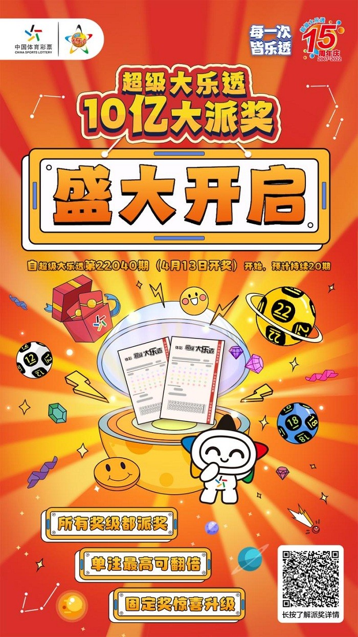 四川新闻网消息 “所有奖级都派奖”“单注最高可翻倍”“固定奖惊喜升级”……今年的超级大乐透全国性派奖活动再次来袭,将于第22040期(4月13日开奖)开始,预计持续20期,派奖总额10亿元。活动期间,追加投注且单张购彩金额15元及以上即可参与,多期票在派奖期间按期参与(追加投注且单期购彩金额15元及以上),超级大乐透用惊喜感恩回馈每位为公益事业作出贡献的购彩者。