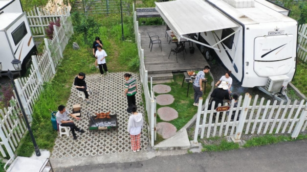 在吉娜水乡房车营地,干净整洁的房车、极简工业风的箱式房,让人感受到不一样的风格。房车营地的建设不仅为游客提供了丰富多彩的户外体验,也为周边20余名村民提供了稳定的就业岗位。