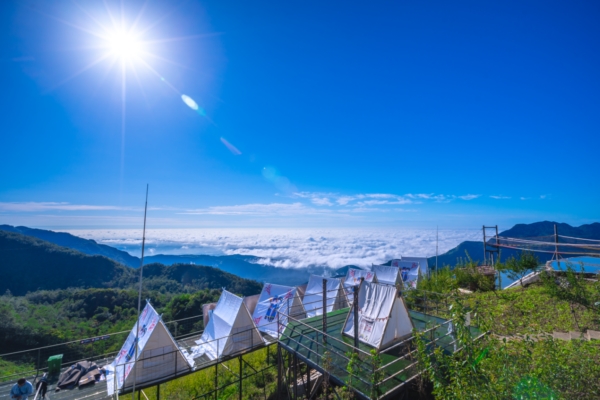 在北川羌族自治县九皇山,景区充分发挥山区海拔高、终年云雾缭绕的自然优势,推出了星空露营季。在这里,游客可以尽情体验各式各样的防雨防潮帐篷。帐篷外,和家人朋友一起看星星、吃烧烤、跳沙朗、俯瞰山下夜景,悠闲又惬意。