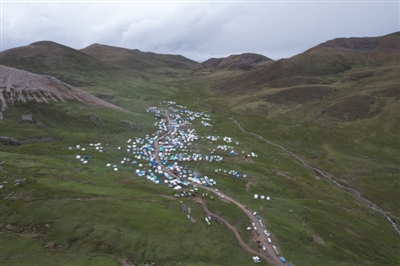 对理塘人来说,虫草一直是大部分农牧民的主要收入。虽然今年采集虫草的人不及往年,但阿加沟依然涌进了上万人。6月8日下午,部分采集者已经下山,营地里尚有数百个帐篷错落有致地搭建在道路两边的草地上,人们都去了山上,整个山谷一片沉静。只有傍晚六七点的时候,人们才像雪水一样从山上汇聚下来,这里才变得热气腾腾。