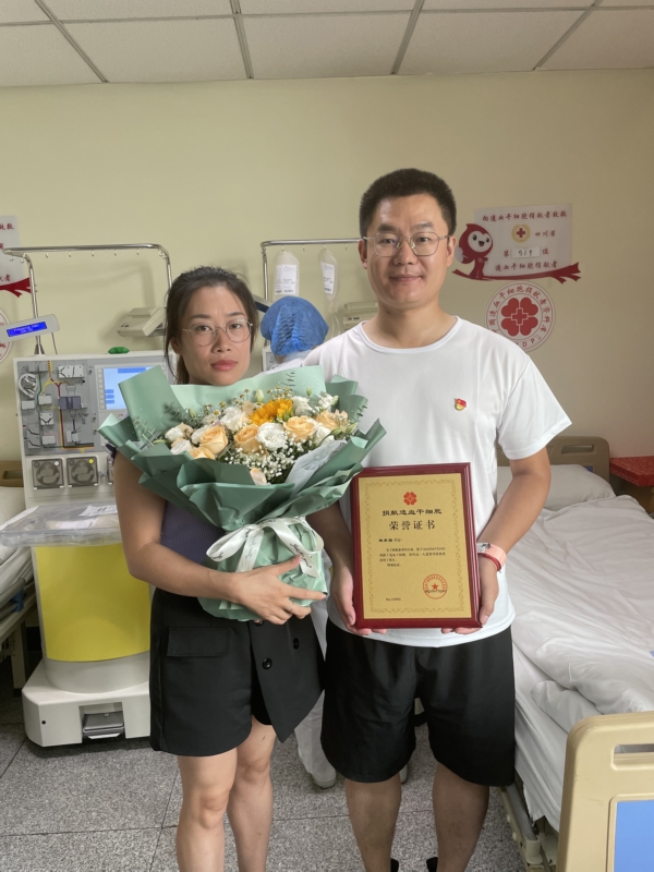 今年4月份,薛英强接到四川省红十字会电话,工作人员告诉他,现在有一名江苏的白血病儿童与他配型成功,问他愿不愿意继续捐献造血干细胞?薛英强当即表示愿意。7月底,在四川省红十字会的安排下,他来到省人民医院,完成了造血干细胞捐献,采集的造血干细胞血液将会输入到患儿体内,薛英强希望这些干细胞像种子一样生根发芽,造出健康的血液。经过短时间休息,现在薛英强已回到工作岗位。