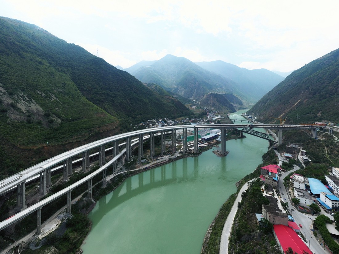 乌斯河特大桥桥区布设于大渡河右岸斜坡山脚和河流阶地之间,自正式开工建设以来,为克服施工空间狭窄、桥梁墩柱密集、地质结构复杂、峡谷风力大、桥梁结构形式多等多方面困难,乐汉公司多次召开施工专题会议,坚持做好前期规划,合理调整资源配置,以“安全先行,质量为本”的理念,加大“高温防暑、汛期防控、峡谷防风、疫情防控”工作管理力度,合理安排人员值班,错“风”施工,提高建设效率,严格落实安全、质量、成本管控措施,高品质完成建设任务。(图片由蜀道集团提供)