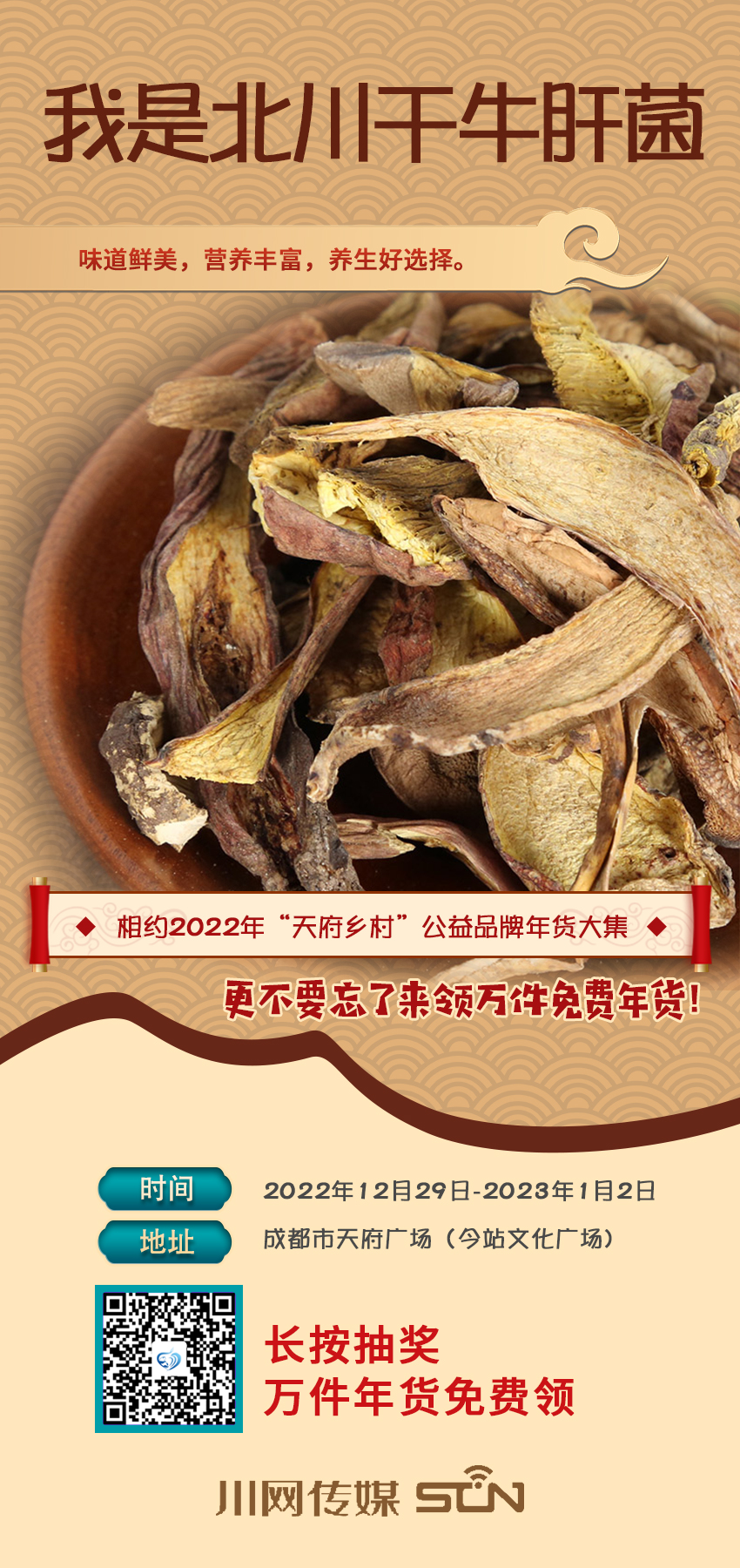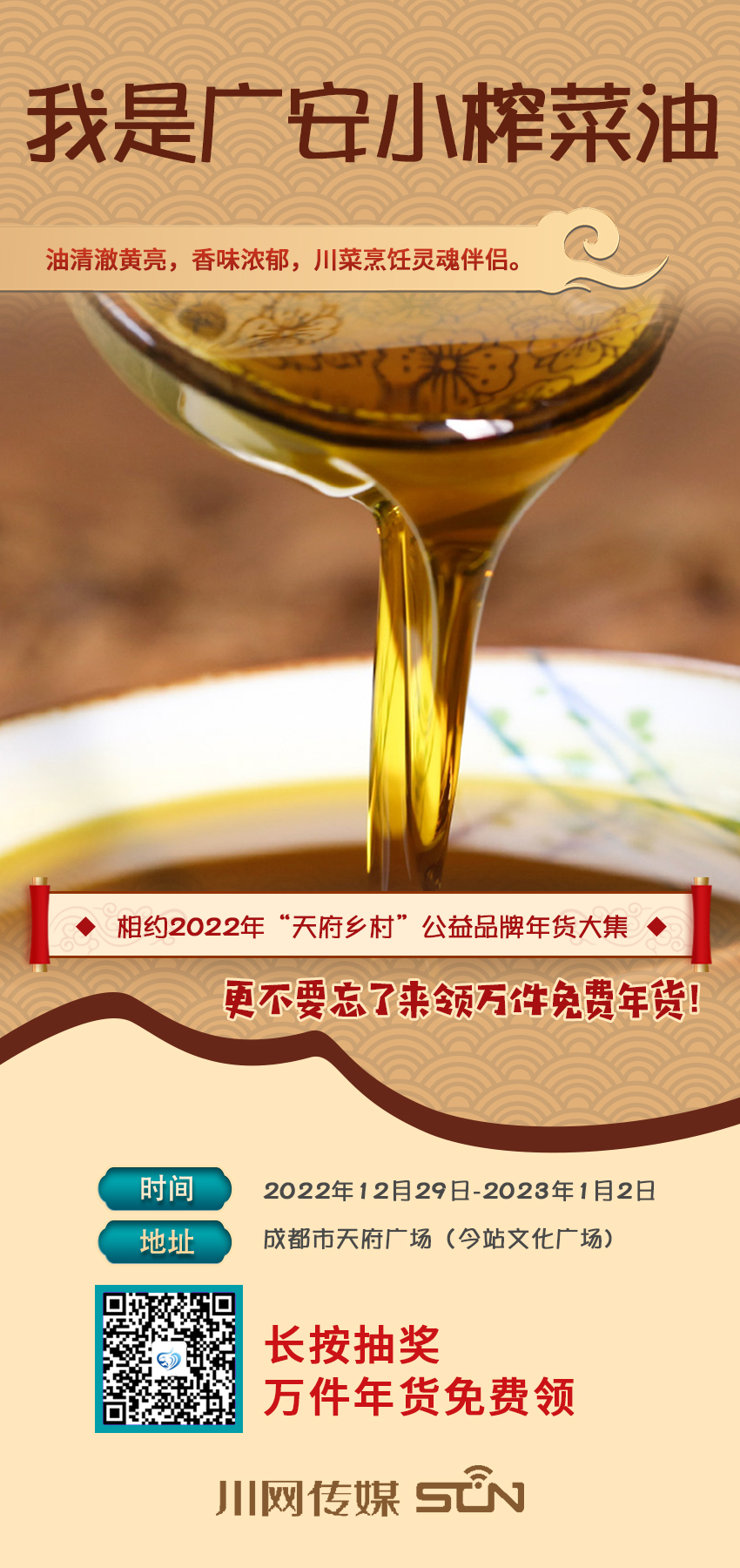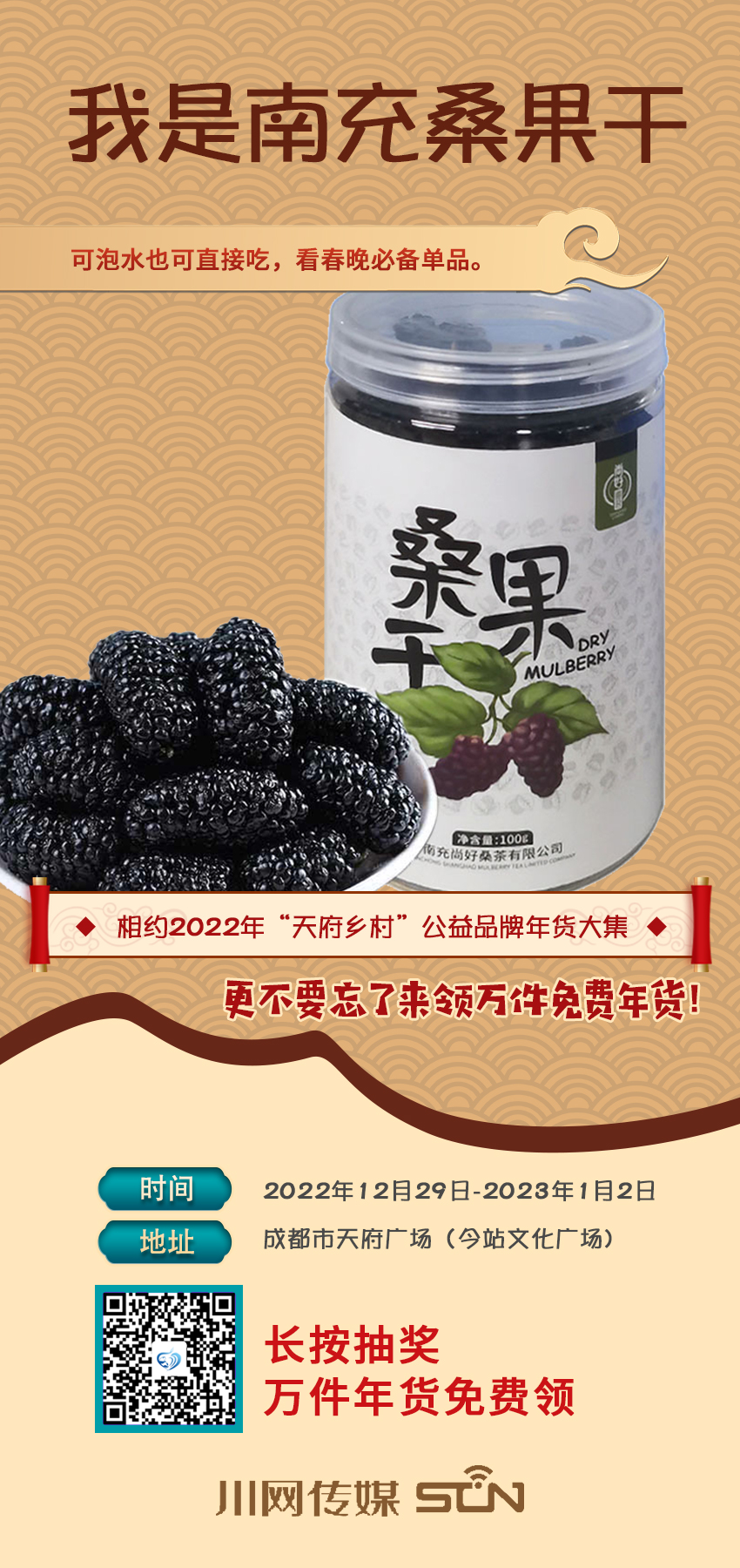 “累了困了,来领万件免费年货”,“天府乡村”公益品牌年货大集明天就开市了,还不准备起去天府广场(今站文化广场)买年货,抢相因。