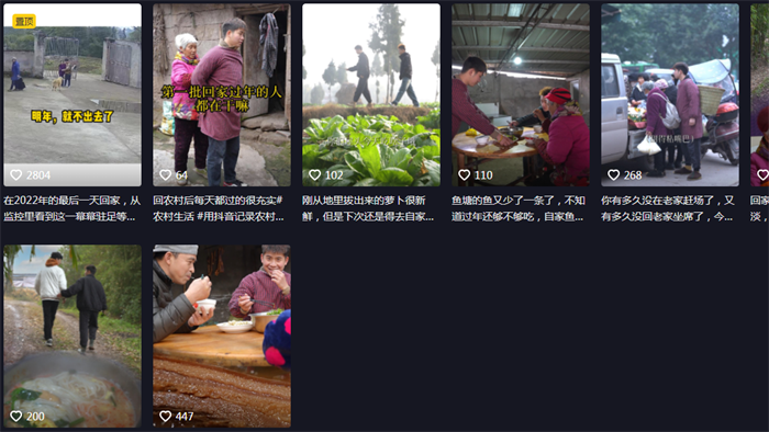 这个短视频的成功不仅给了陈晨信心,也激发了他创作的热情。自那之后,他运用自己在学校学到的专业知识,独立策划、拍摄,十天内发布了8条作品。在他的短视频里,记录了家乡生活,与家乡父母、朋友辛勤劳作、嬉戏打闹的场景。如今,他的短视频账号已经收获了将近三百个粉丝、四千多点赞。