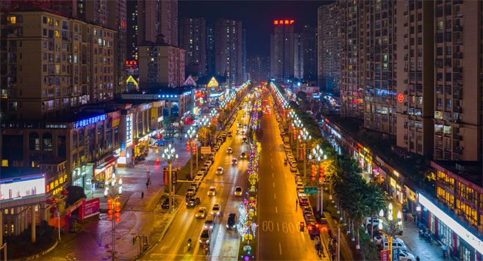 夜幕降临,走进县城大街小巷,五彩光影点亮了夜景,映衬着熙熙攘攘的人群,烘托出浓厚的节日氛围......