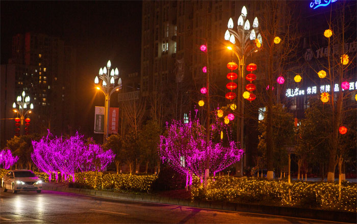 据宣汉县综合行政执法局副局长刘城君介绍,以彰显节日氛围、美化城区环境、提高城市形象、增加市民幸福感为主题,全力做好春节氛围布置工作,对达(州)宣(汉)快速通道、西华大道、永安大道、南街等8条主要干道进行各类灯饰挂件亮化;对县城西华大道、百节溪路、解放路、琦云路等12条道路的人行道花箱,栽植约8.97万株花卉布景;对县城区重要路口、节点实施迎春灯展,在西延线路口、民歌广场、西门转盘、街心花园等10个重要节点设置安装大型迎春灯展10个。