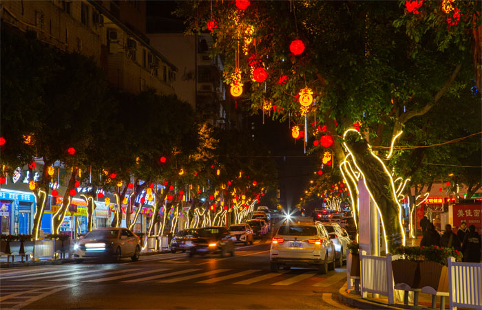 四川新闻网消息 1月15日夜晚,漫步在宣汉县城,只见公园、街道、滨河路等主要场所,布置了五彩斑斓的各式彩灯,一派“处处悬灯彩,和谐润万家”的奇幻色彩,洋溢着新春的喜庆气息。