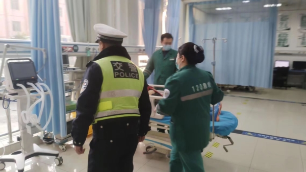 情况十分紧急,为避免延误救治时间,执勤交警立即与求助人取得联系,约定好汇合地点后,执勤交警立即前往接应。17时38分,执勤交警顺利与求助车辆汇合。