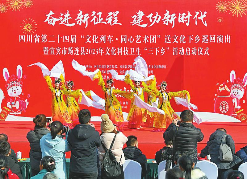 1月30日,四川省第二十四届“文化列车·同心艺术团”送文化下乡巡回演出走进宜宾市筠连县和高县,把文艺表演和欢声笑语撒向广袤的田野,汇聚起奋进的力量。
