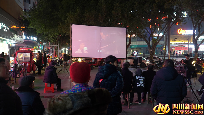 四川新闻网消息(张馨露 记者 郭建坤 文/图)1月30日晚上七点,南充市高坪区万美广场人头攒动,一块大屏幕摆在路中央,正播放着电影《建党伟业》。