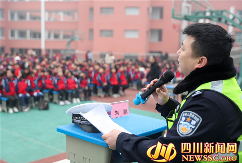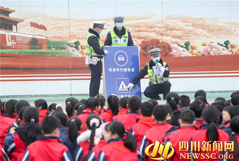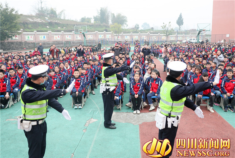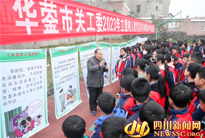 四川新闻网—首屏新闻广安2月8日讯(冉鹏 邱海鹰 摄影报道)2023年2月8日是四川省华蓥市春季开学行课日,该市关心下一代工作委员会、法学会、公安局交通警察大队及老年志愿者法治宣讲团等部门, 联合组织法治宣传志愿者,分别到各中小学校开展“讲法治, 讲安全, 护航健康成长”专题活动,以讲座、展板和发放资料、有奖知识问答等形式,宣传《未成年人保护法》《预防未成年人犯罪法》《道路交通安全法》等法治知识,上好开学第一课,让法治知识记心间。