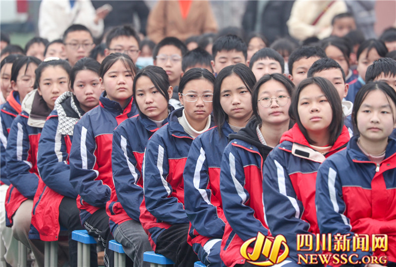 | 2月8日,四川省华蓥市铜堡初中春季刚开学行课的学生,在“讲法治, 讲安全, 护航健康成长”专题活动现场, 认真听取法治宣传志愿者宣讲法治知识。 |