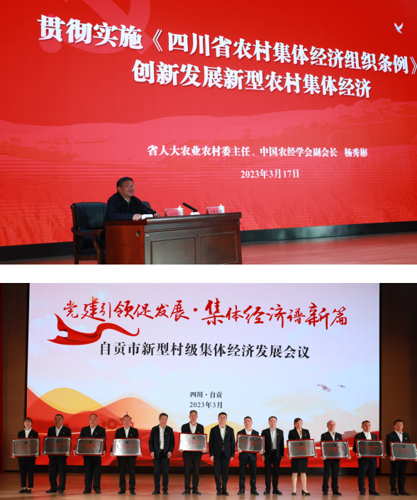 会上,杨秀彬围绕贯彻实施《四川省农村集体经济组织条例》及创新发展新型农村集体经济进行了主题讲座。现场播放自贡市党建引领新型村级集体经济发展专题片和示范镇村展示片,有关领导为富顺县狮市镇等7个示范镇、沿滩区九洪乡三河村等10个示范村获奖代表进行现场授牌。成渝地区优秀村党组织书记现场交流分享发展壮大村级集体经济经验做法。