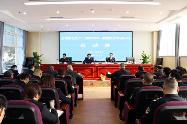 王涛强调,各级各部门要紧盯矿山、危化、烟花爆竹、交通运输、水电、在运油气管道、建筑施工、城镇燃气、消防、特种设备、文化旅游、民爆物品以及工贸等重点行业领域,精准研判安全风险,统筹抓好部门联动,全面整合执法力量,有效遏制生产安全事故。一要提高认识,加强组织领导。要从提高对中、省、市有关安全生产重大决策部署的认识,延伸拓展到对安全监管执法和“强安2023”专项行动的认识,加强组织领导,统筹安排工作,实现既定目标;二要注重实效,狠抓工作落实。通过充分发挥执法“利剑”震慑作用,倒逼企业主动落实安全生产主体责任;三要聚焦重点,全面整合力量。要充分发挥好安办综合监管职能,督促行业部门积极作为、敢打敢拼,有效杜绝安全监管执法“宽、松、软、弱”等突出问题;四要树好形象,廉洁规范行政。严格落实制式服装着装规定,健全行政执法“三项制度”,坚持监管执法与指导服务并重,构建良好亲清政商关系,努力培塑应急执法新形象。